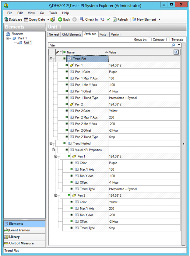 When modeling Visual KPI Trends, it can be useful to group AF attributes. Each Trend Pen has many properties. The image below shows the difference between flat and nested approaches.