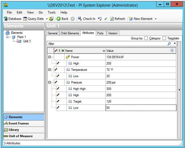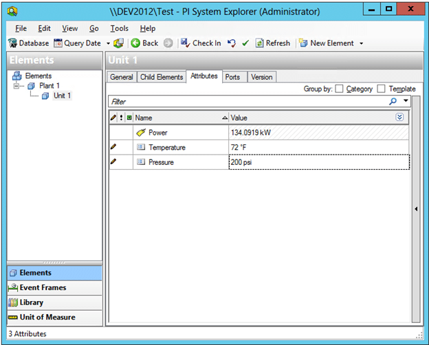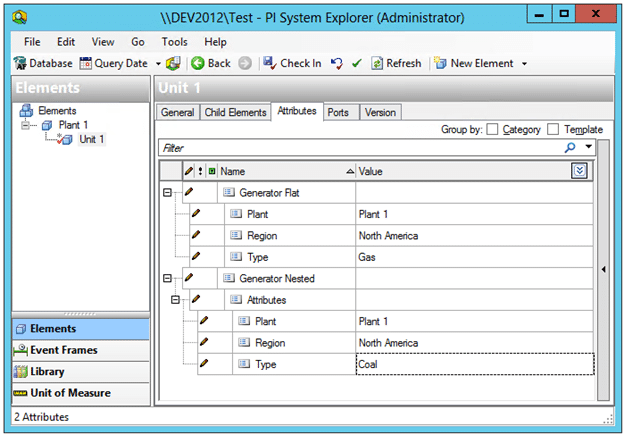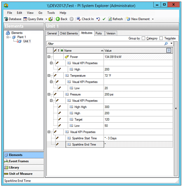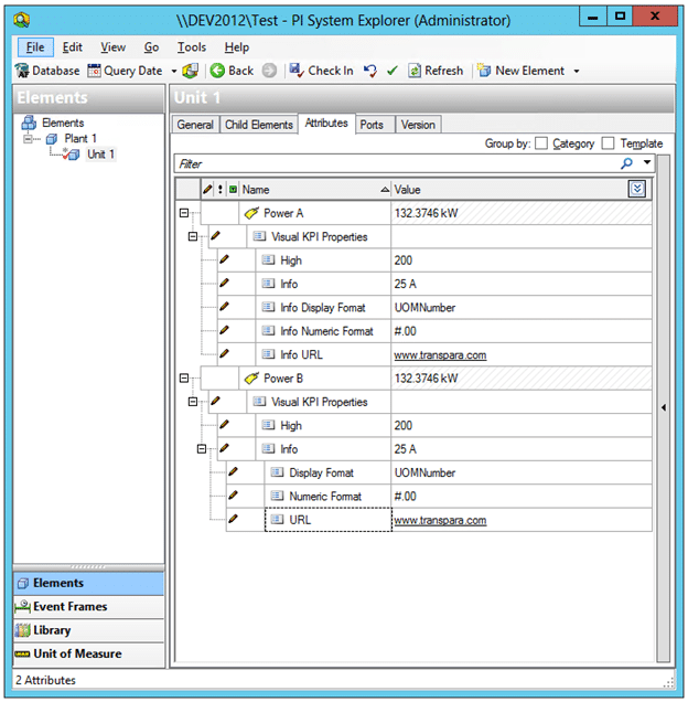 By default, the Remote Context Server will create two Visual KPI groups out of the two AF elements (Plant 1 and Unit 1) found in the image representation below:
