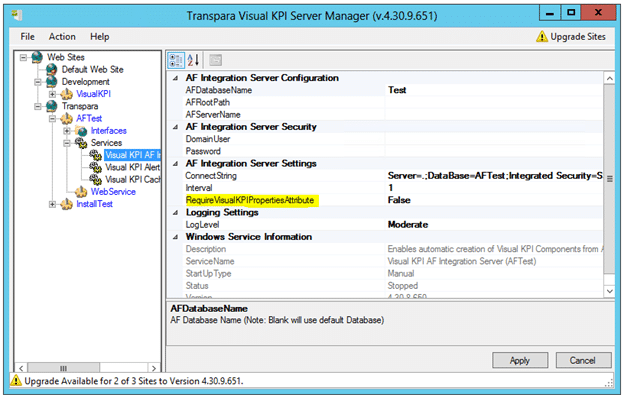 Visual KPI Remote Context Server has a setting called Require Visual KPI Properties Attributes, which is set to False by default. If set to True, this attribute be will be required in order to process the AF elements and attributes.